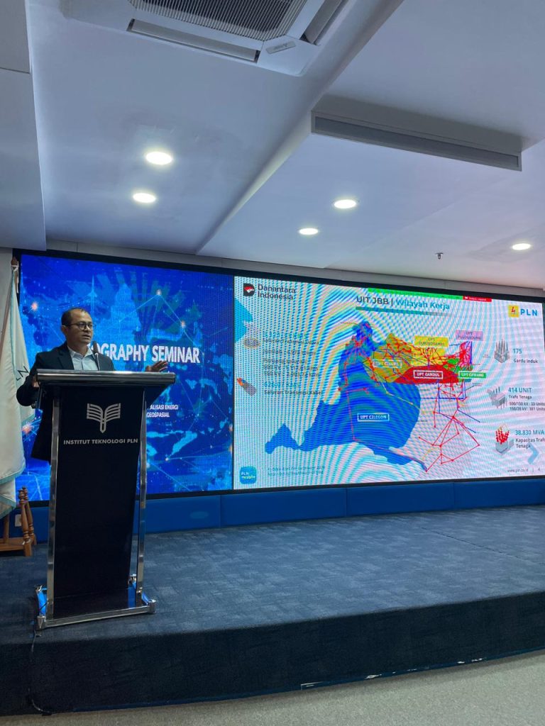 This seminar brought together the perspectives of regulators, researchers, industry practitioners, and academics in a constructive discussion space. Himmel Sihombing, General Manager of PLN UIT JBB, presented a strategic overview of how the implementation of geospatial technology supports the planning and development of electricity infrastructure. In his presentation, he conveyed that spatial data accuracy is now a critical foundation for determining transmission lines, substation planning, and optimizing network assets as a whole.